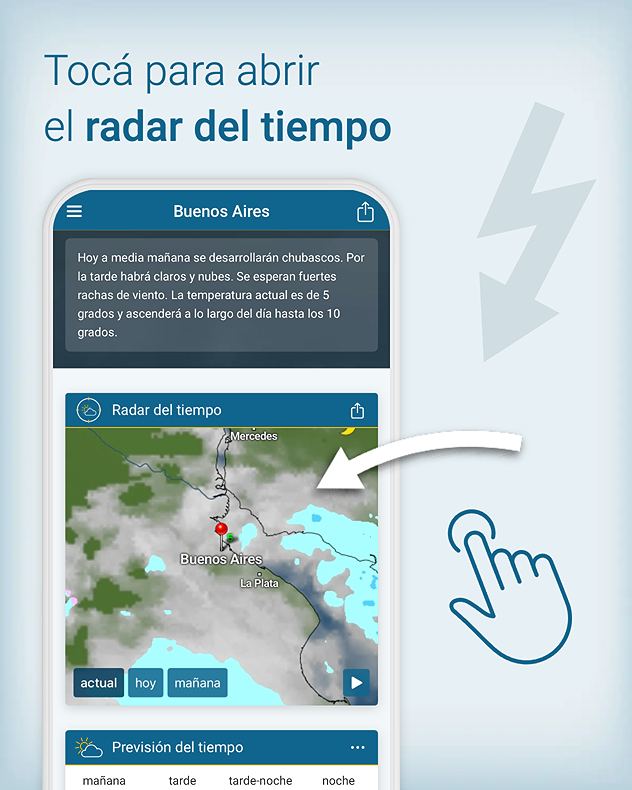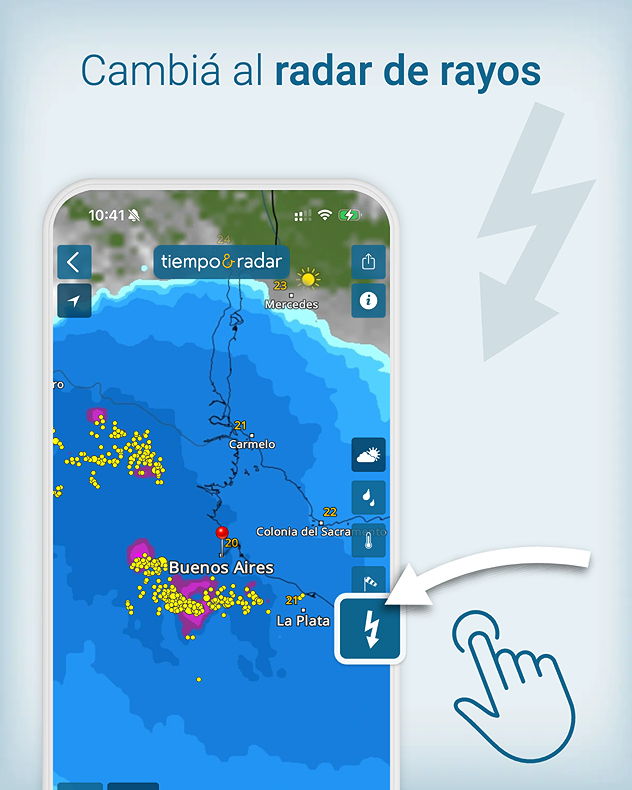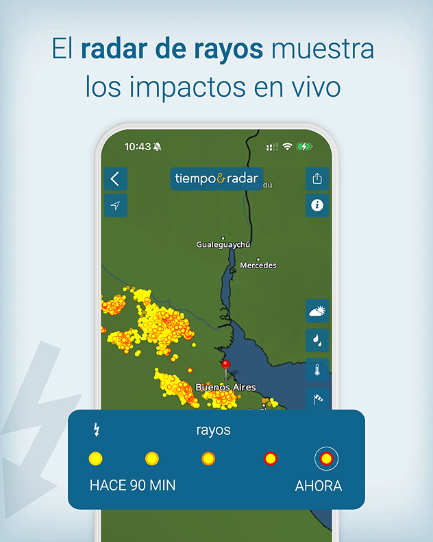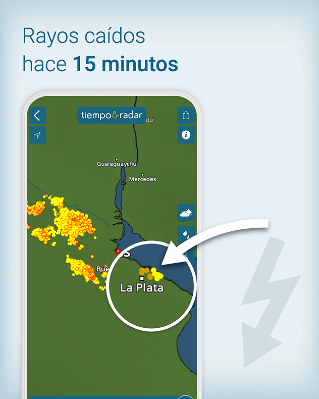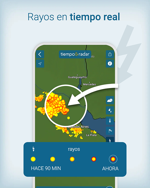 Nuestra galería de fotos te muestra cómo pasar fácilmente del radar del tiempo al radar de rayos dentro de la app de Tiempo & Radar y toda la información que te ofrece.