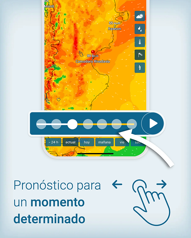 Los tonos rojizos y, especialmente, los violáceos, indican rachas de viento muy elevadas y por encima de los 100 kilómetros por hora. Si quieres conocer la evolución o el estado para un momento en concreto de los próximos tres días, encontrarás una línea temporal en la parte inferior del mapa. También es posible consultar los registros de jornadas anteriores.