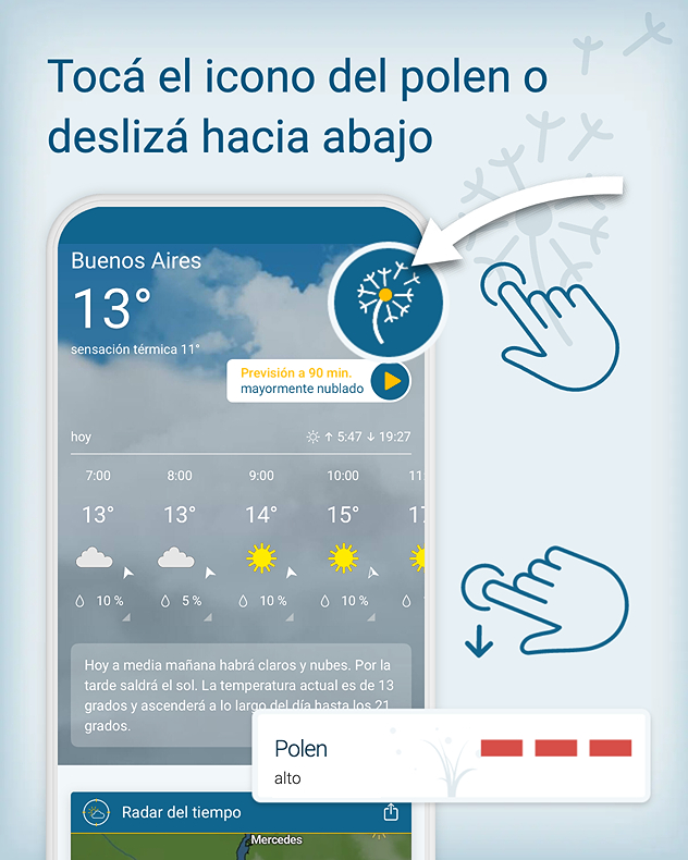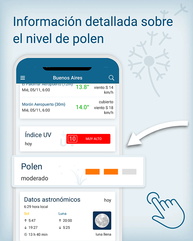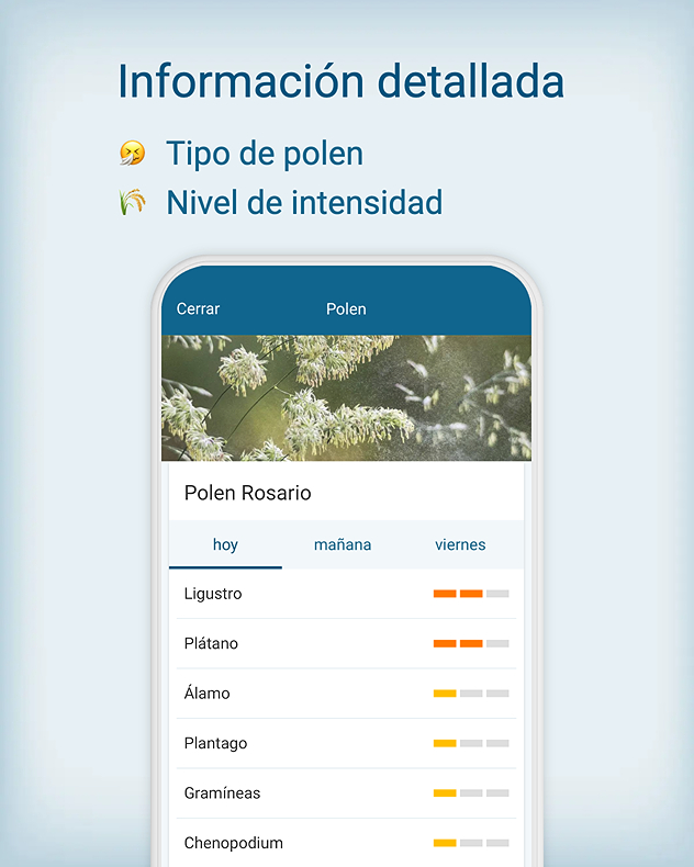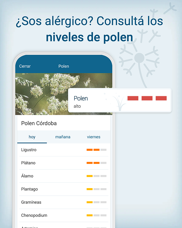 Nota: De momento los datos de polen solo están disponibles para la provincia de Buenos Aires, Córdoba, Santa Fe y Entre Ríos.